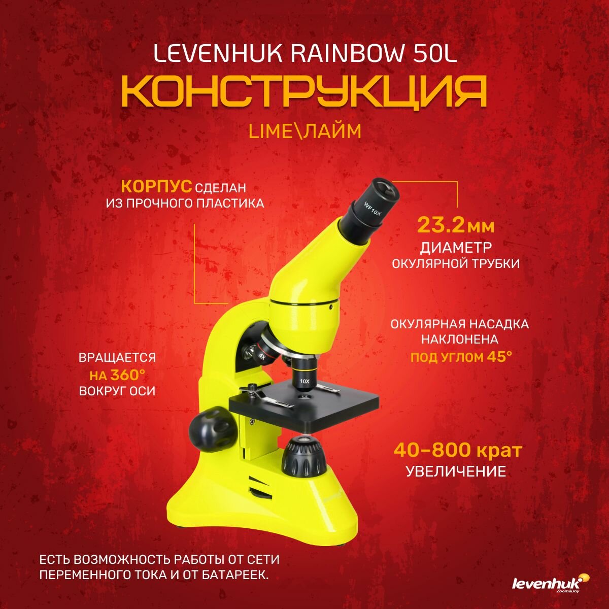 Микроскоп Levenhuk Rainbow 50L Lime (Лайм)