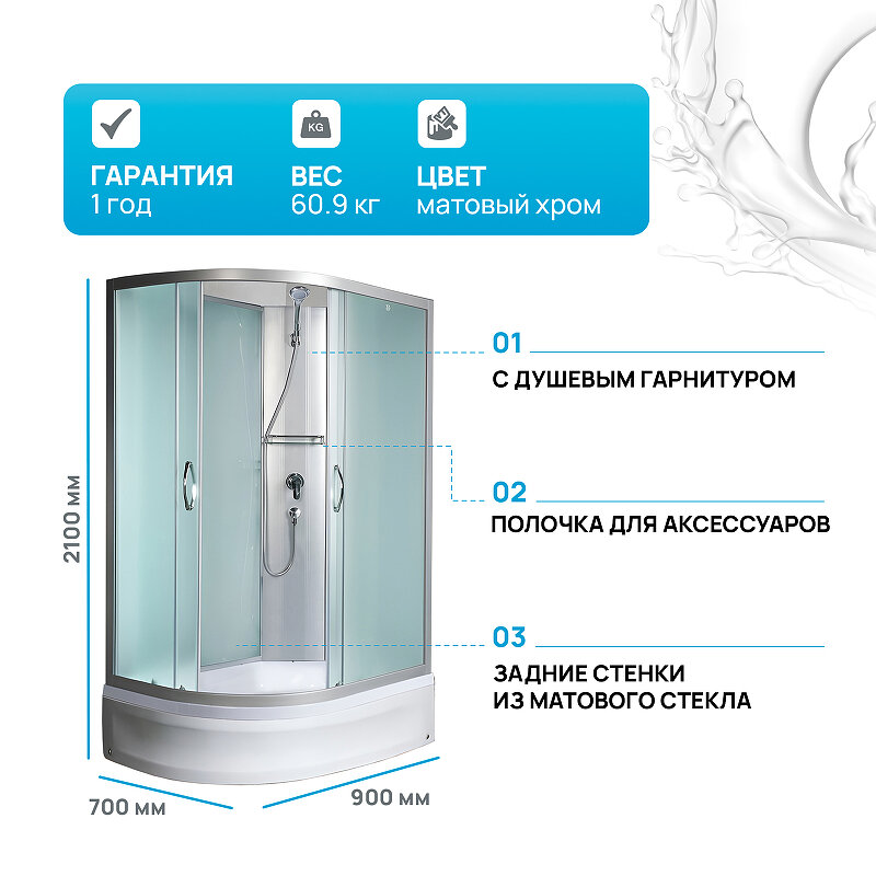 Душевая кабина River Desna 90/24 MT стекло матовое, профиль хром матовый