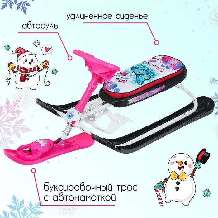 Снегокат «Ника-кросс Бабочки», СНК, цвет розовый/белый
