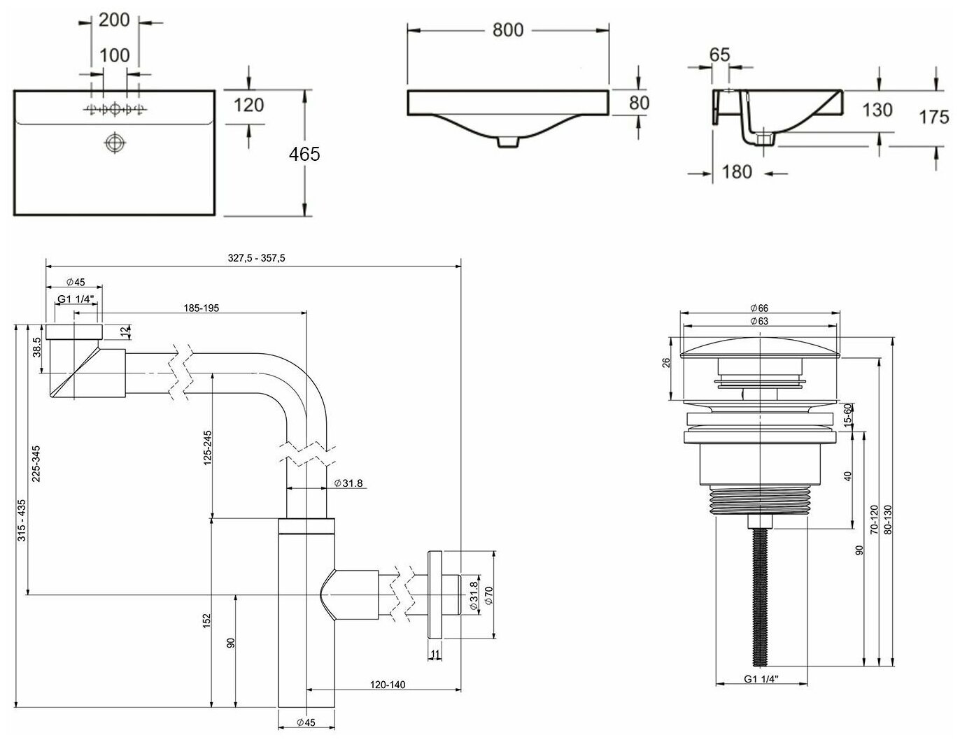 Купить Комплект 3 в 1 Lavinia Boho Bathroom Sink 21520647: врезная фарфоровая раковина 80 см, металлический сифон, донный клапан