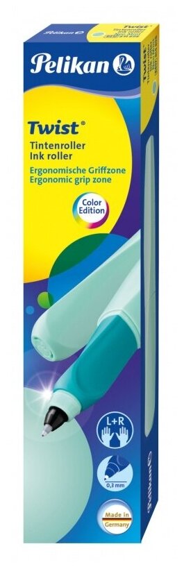 Ручка роллер Pelikan Office Twist Color Edition R457 (PL814898) Neo Mint, 2 катриджа с синими чернилами интересное: