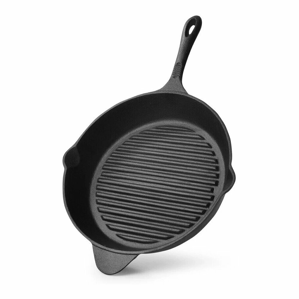 4098 FISSMAN Сковорода-гриль 30x6,3см с вспомогательной ручкой (чугун) Рифленое дно; Со сливом; Индукция интересное: