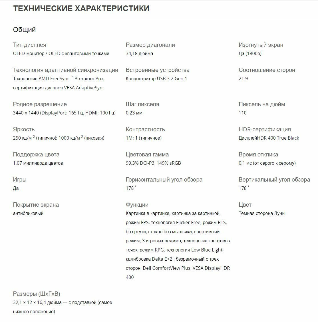 34" Монитор Alienware AW3423DWF, 3440x1440, 165 Гц, OLED, чёрный интересное: