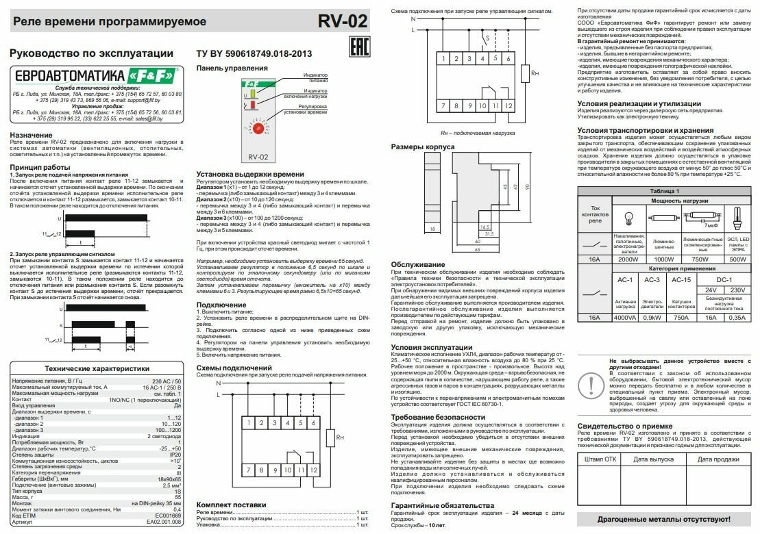 Реле времени F&F RV-02, с входом управления EA02.001.008 интересное: