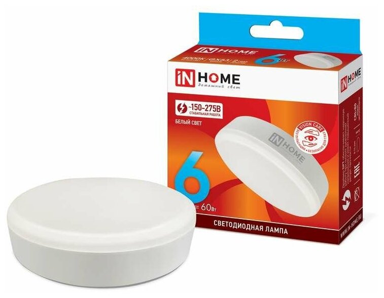Купить Лампа светодиодная LED-GX53-VC 6Вт 230В 4000К 540лм IN HOME 4690612030791 (10шт.в упак.)