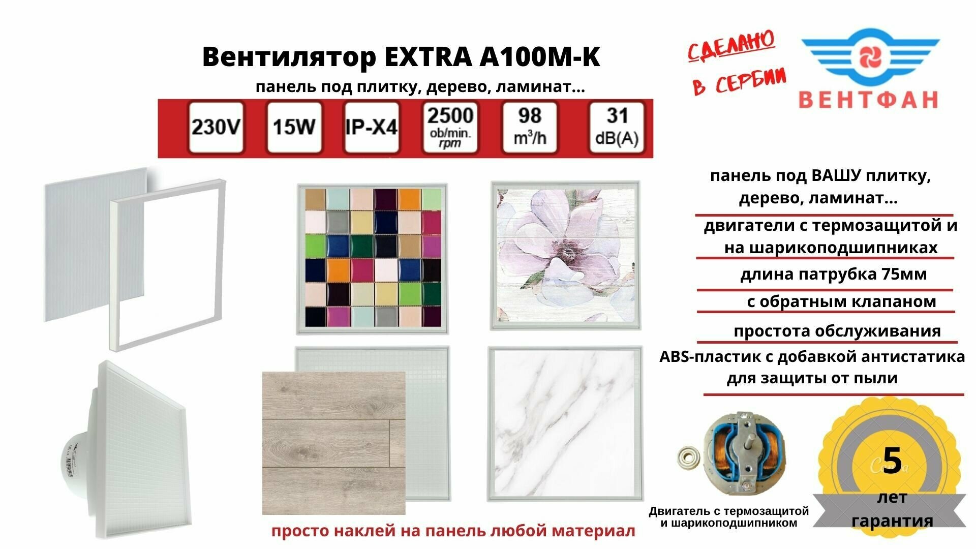 Вентилятор D100мм с панелью под вашу керамическую плитку и с обратным клапаном EXTRA A100М-PL, Сербия интересное: