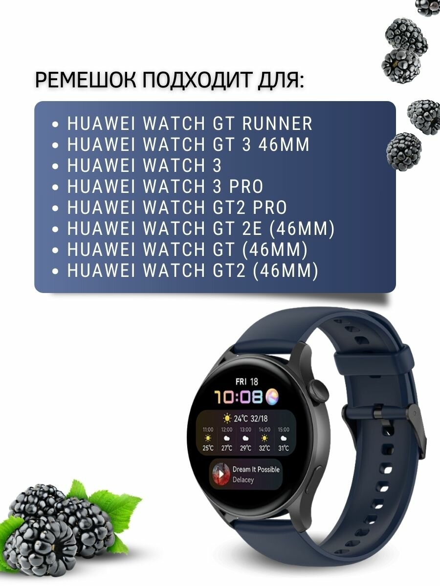 СохранитьСиликоновый ремешок для Huawei Watch 3 / 3Pro / GT 46mm / GT2 46 mm / GT2 Pro / GT 2E 46mm (черная застежка) 22 мм, темно-синий интересное: