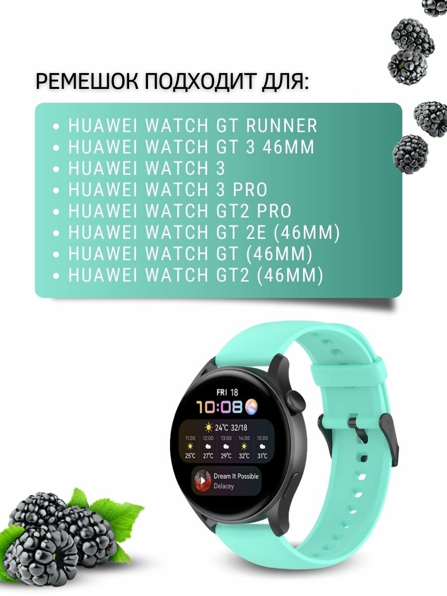 Купить Силиконовый ремешок для Huawei Watch 3 / 3Pro / GT 46mm / GT2 46 mm / GT2 Pro / GT 2E 46mm (черная застежка) 22 мм, бирюзовый