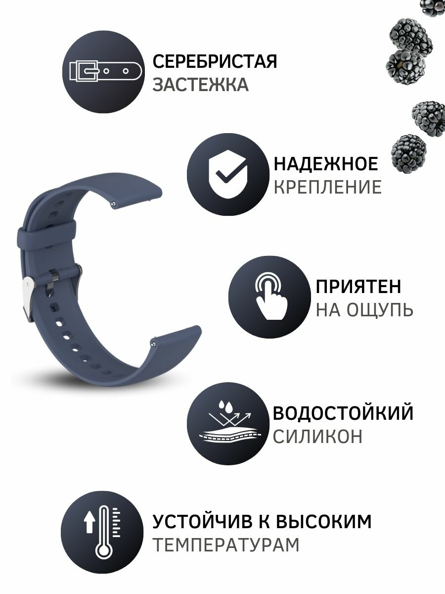 Силиконовый ремешок для Huawei Watch 3 / 3Pro / GT 46mm / GT2 46 mm / GT2 Pro / GT 2E 46mm (серебристая застежка) 22 мм, темно-синий