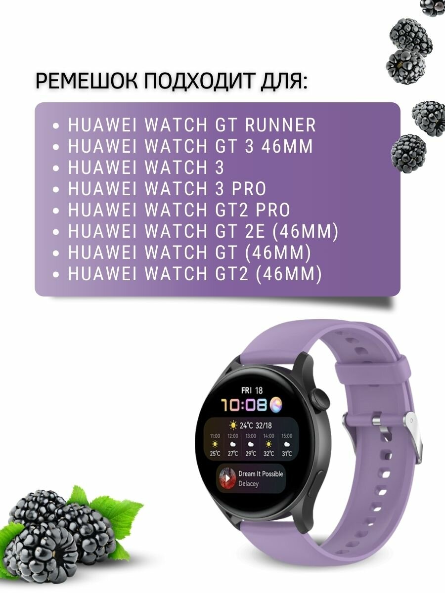 Купить Силиконовый ремешок для Huawei Watch 3 / 3Pro / GT 46mm / GT2 46 mm / GT2 Pro / GT 2E 46mm (серебристая застежка) 22 мм, сиреневый