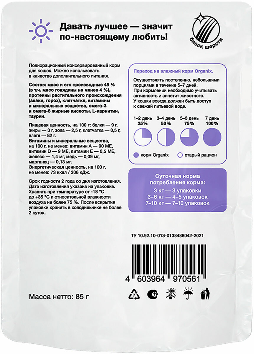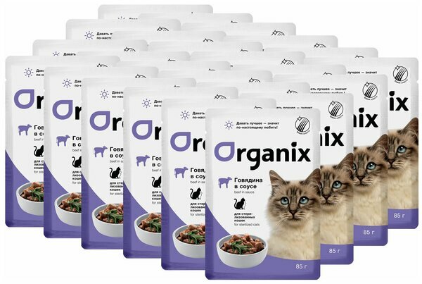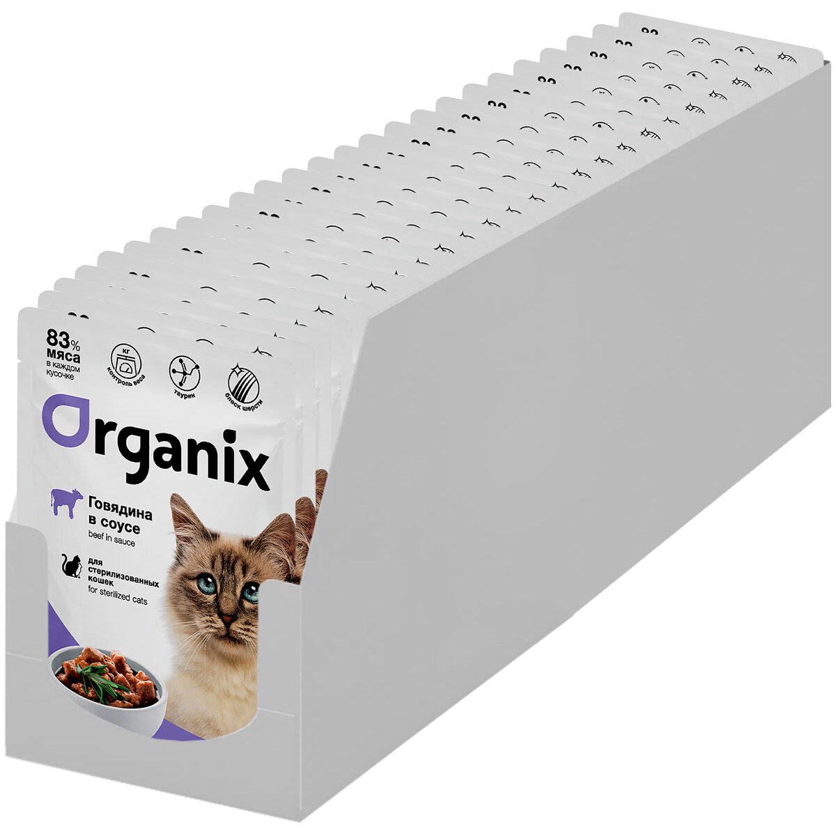 ORGANIX корм влажный "Говядина в соусе" в паучах для стерилизованных кошек и кастрированных котов, 85 гр х 25 шт.