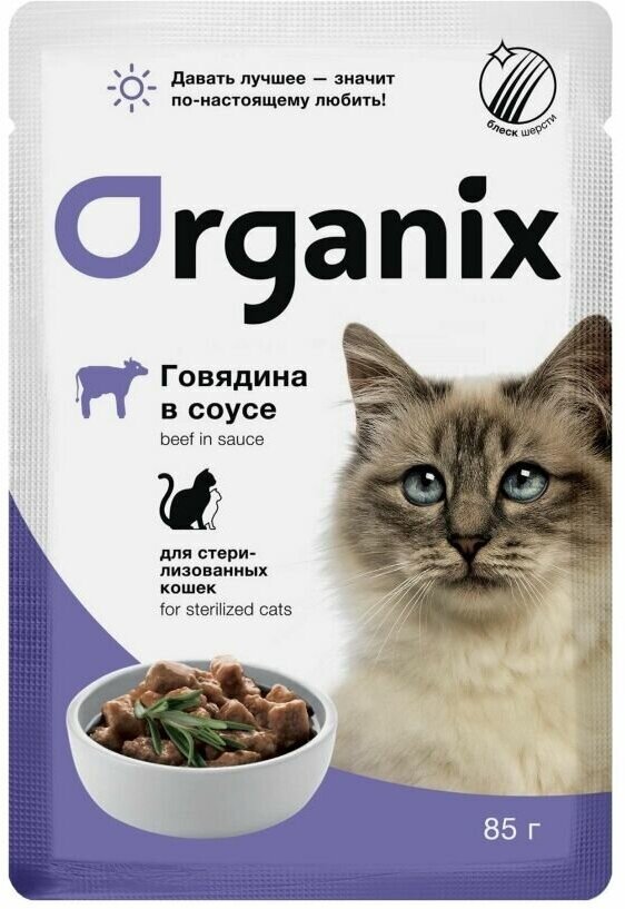 Корм Organix (в соусе) для стерилизованных кошек с чувствительным пищеварением, с говядиной, 85 г x 25 шт интересное: