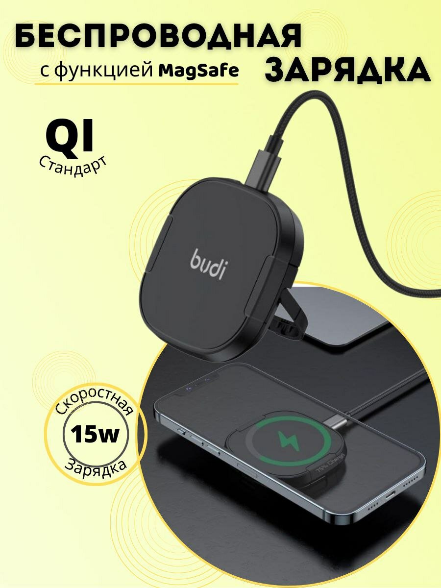 СохранитьБыстрая беспроводная магнитная зарядка для айфона с функцией MagSafe / мощность 15W / со складной подставкой / черная интересное: