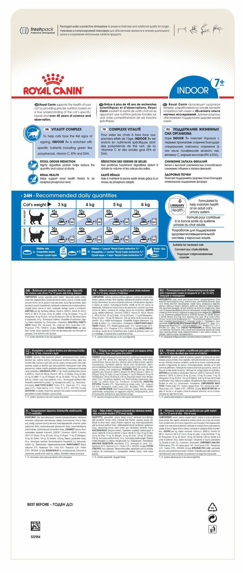 Сухой корм Royal Canin Indoor 7+ для стареющих кошек, живущих в помещении от 7 лет, 0,4 кг годен до 10.09.2023г,