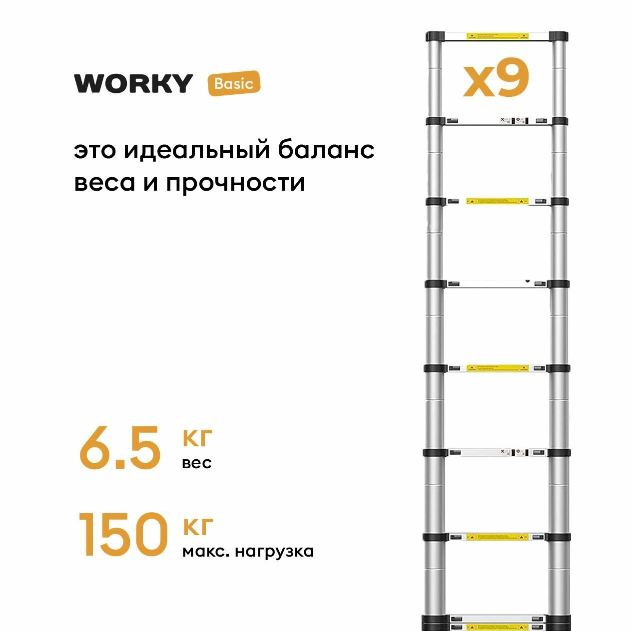 Лестница телескопическая WORKY 2, 6 м, 9 ступеней