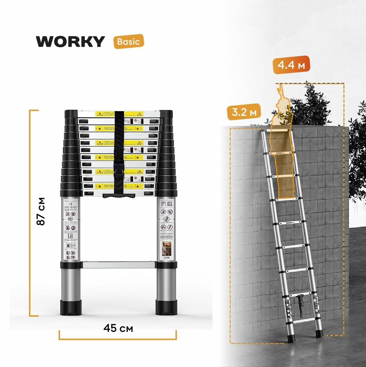 Лестница телескопическая WORKY 4,4 м 15 ступеней