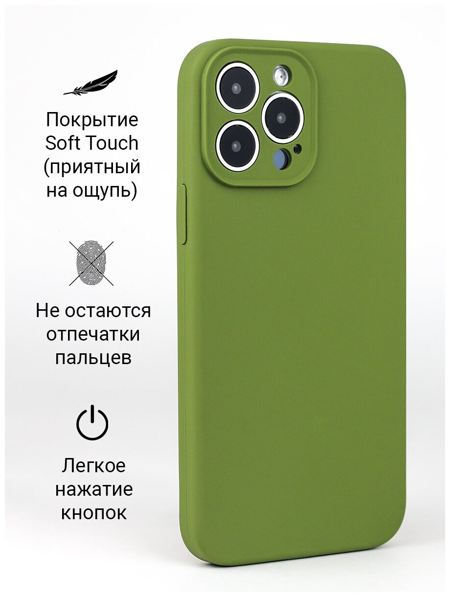 Купить Чехол для iPhone 13 Pro Max / на Айфон 13 Про Макс c защитой камеры силиконовый Хаки