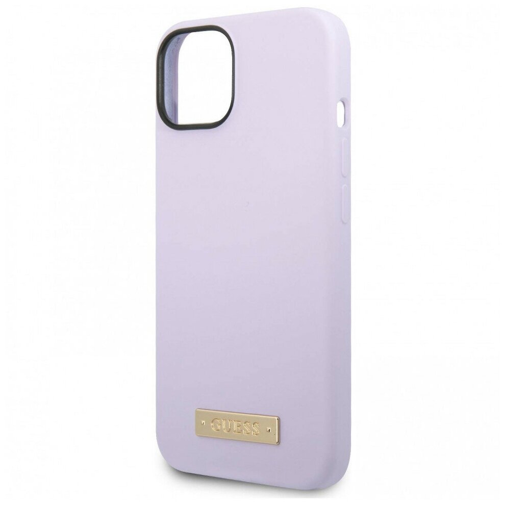 Купить Guess Чехол Guess Liquid Silicone Plate metal logo Hard для iPhone 14 Plus, фиолетовый (Magsafe)