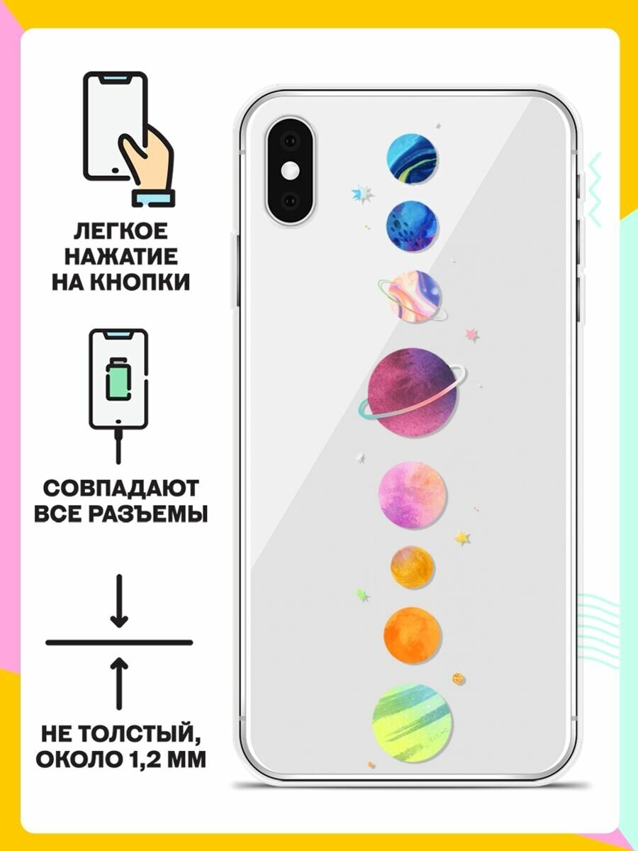 Силиконовый чехол на Apple iPhone XS Max Планеты в ряду / для Эпл Айфон Икс С Макс интересное: