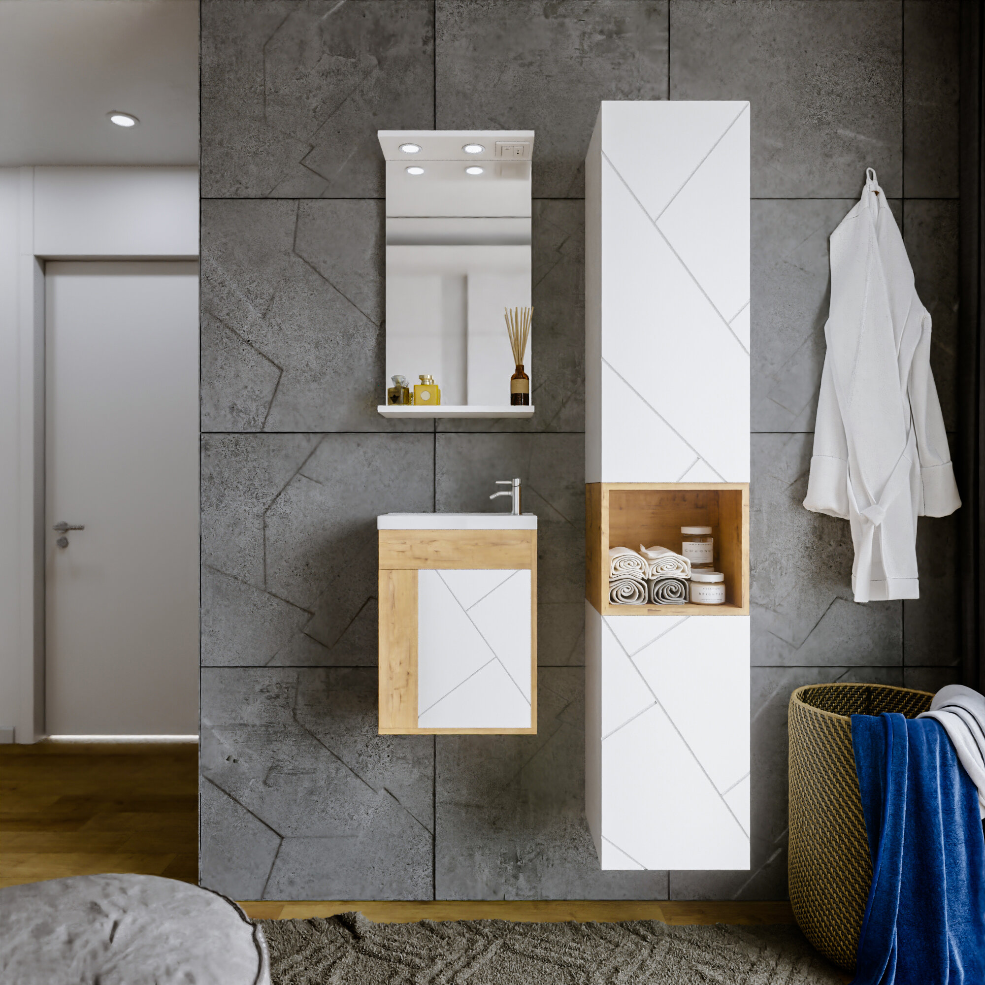 Бриклаер Тумба с раковиной Кристалл 40 белая/дуб бунратти Бриклаер