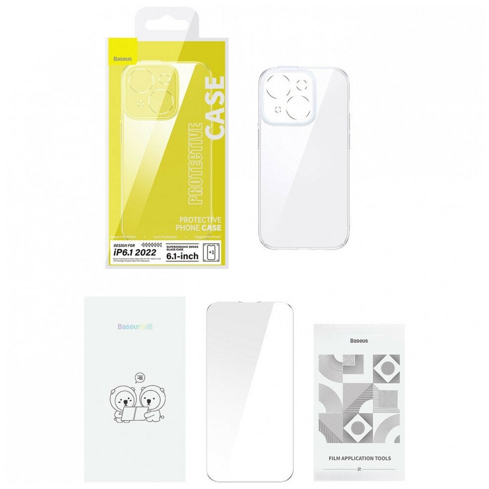 Baseus для iPhone 14 чехол SuperCeramic Glass case +Tempered glass Transparent, шт интересное: