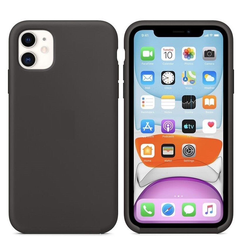 Чехол силиконовый для Apple iPhone 11, черный, с мягким покрытием внутри