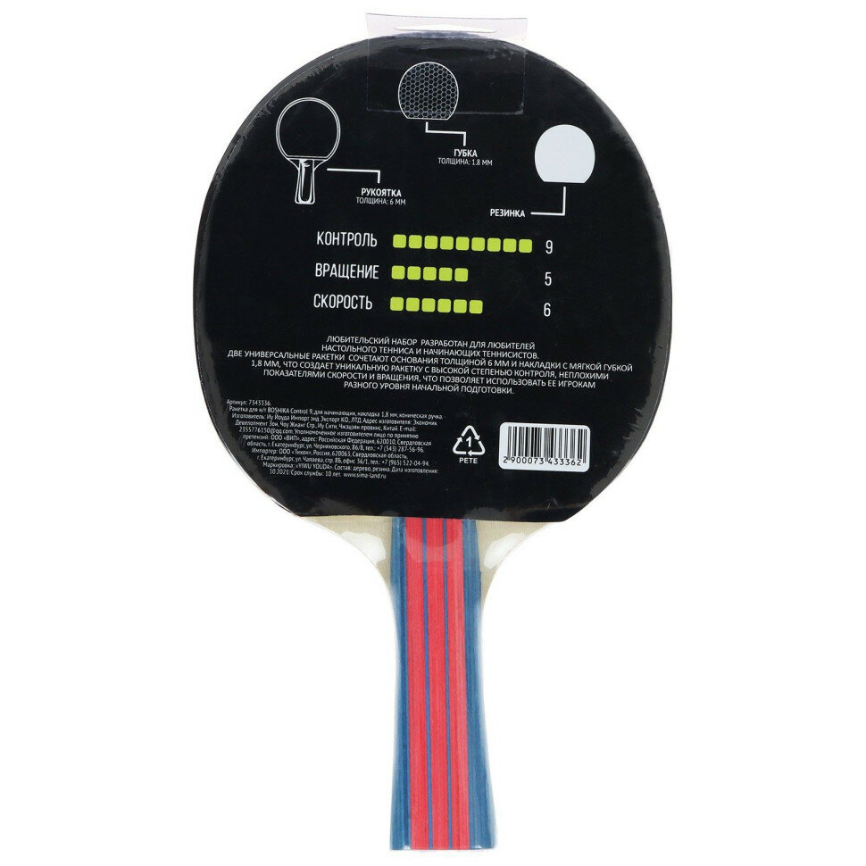 Купить Ракетка для настольного тенниса ТероПром 7343336 BOSHIKA Control 9, для начинающих, накладка 1,8 мм, коническая ручка