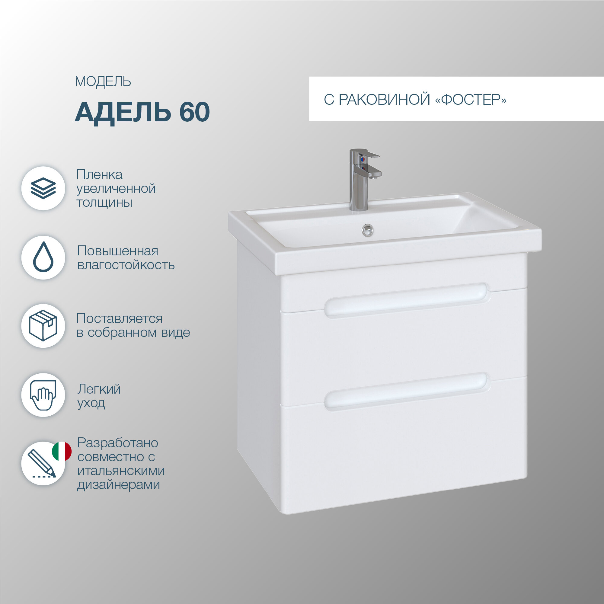 Тумба подвесная SanStar Адель 60 с раковиной Фостер 60 (комплект) для ванной комнаты, белая интересное: