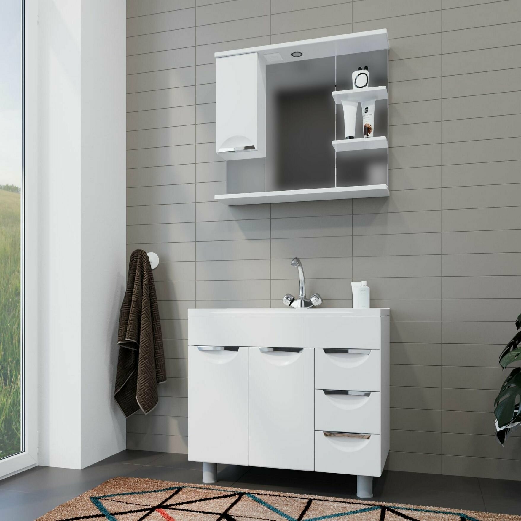 Тумба с раковиной для ванной Кристалл 50 белая.