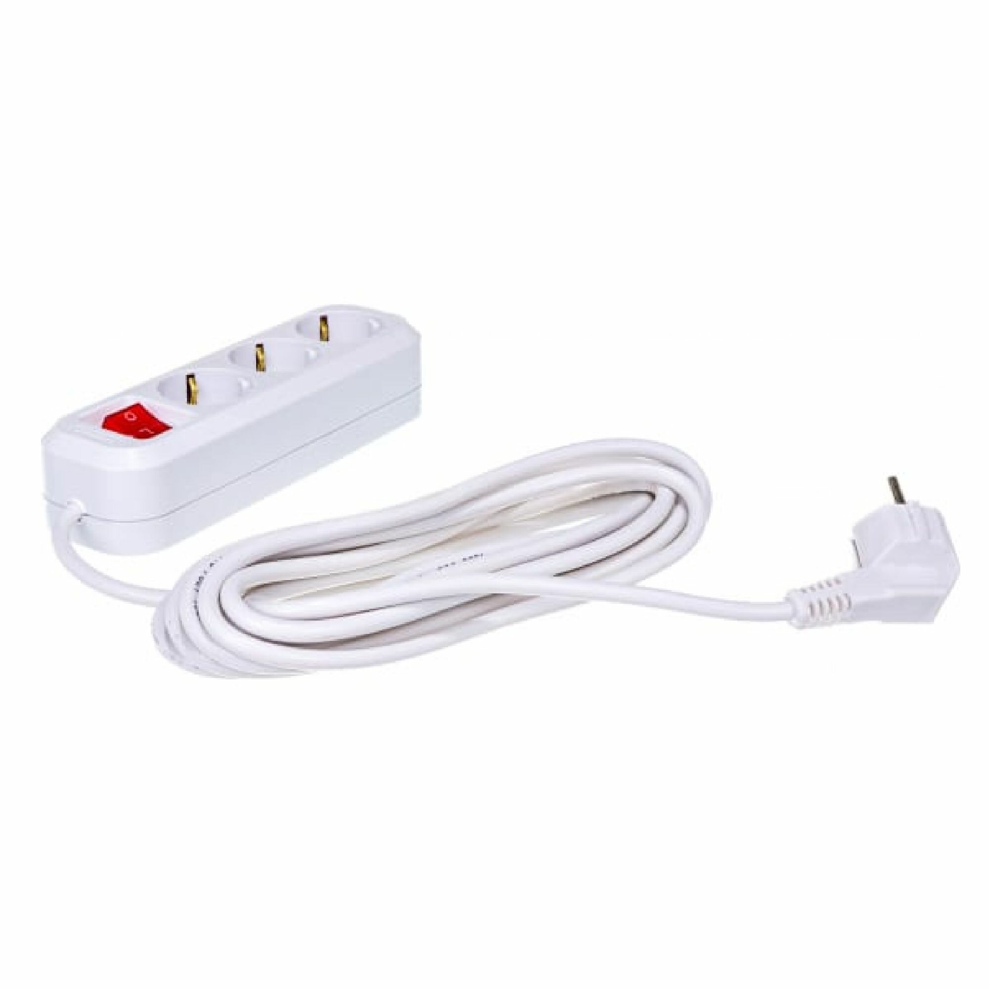Удлинитель UNIVersal 3 розетки 5 м ПВС 3х1 мм2 13 А 2,9 кВт с кнопкой белый (9631987)