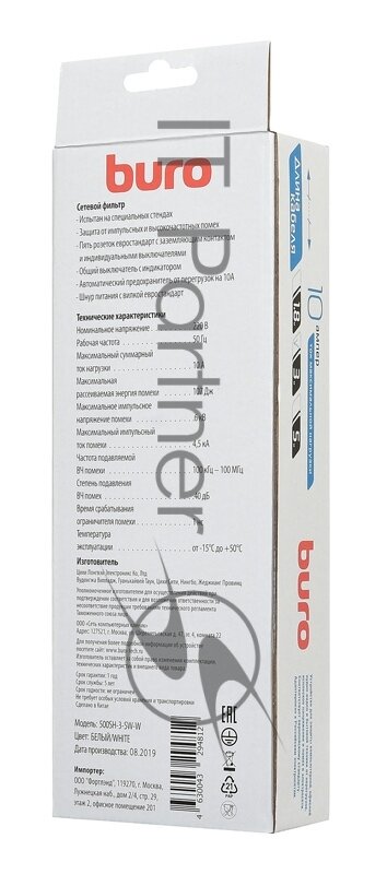 СетевойфильтрBuro500SH-3-SW-W3м(5розеток)белый(коробка) . интересное: