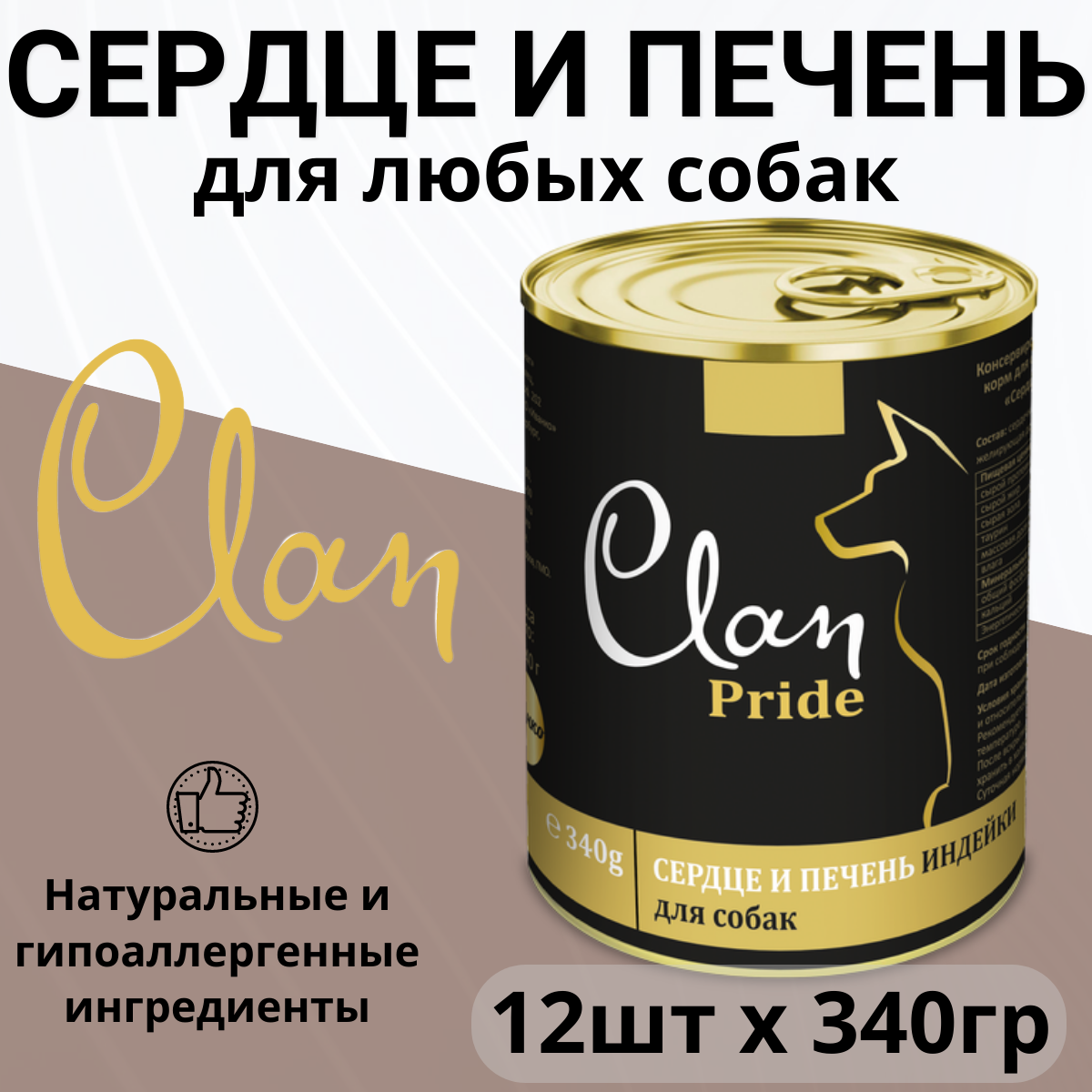 Корм Clan Pride (консерв.) для собак, сердце и печень индейки, 340 г x 12 шт