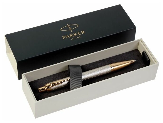 Parker Ручка шариковая Parker IM Premium Grey GT M, корпус из нержавеющей стали серый глянцевый/ золотой, синие чернила (1931687)