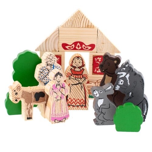 Конструктор деревянный для малышей Томик сказка "Маша и медведь" 17 дет. 4534-9