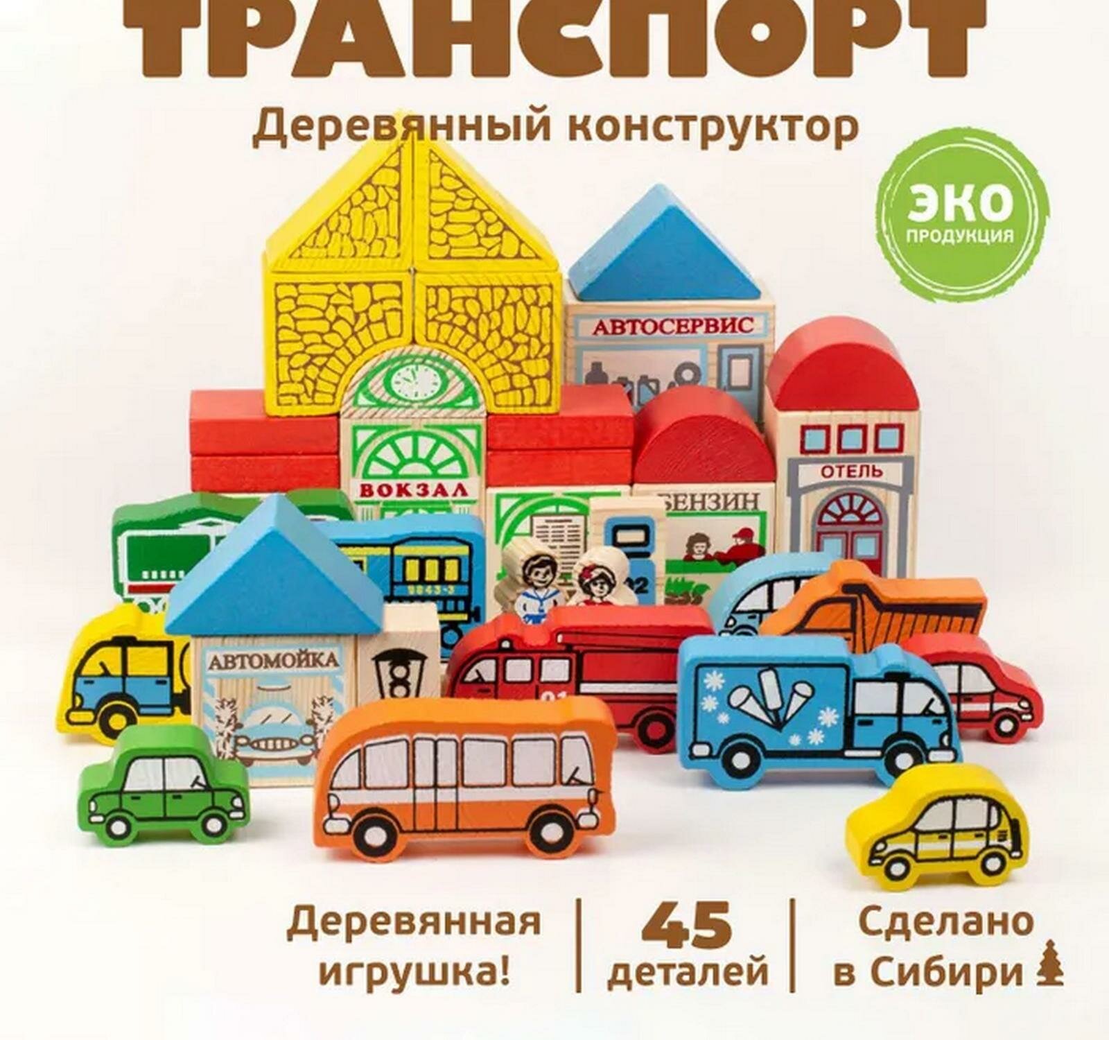 Конструктор деревянный Томик "Транспорт", 45 элементов, арт. 7678-3