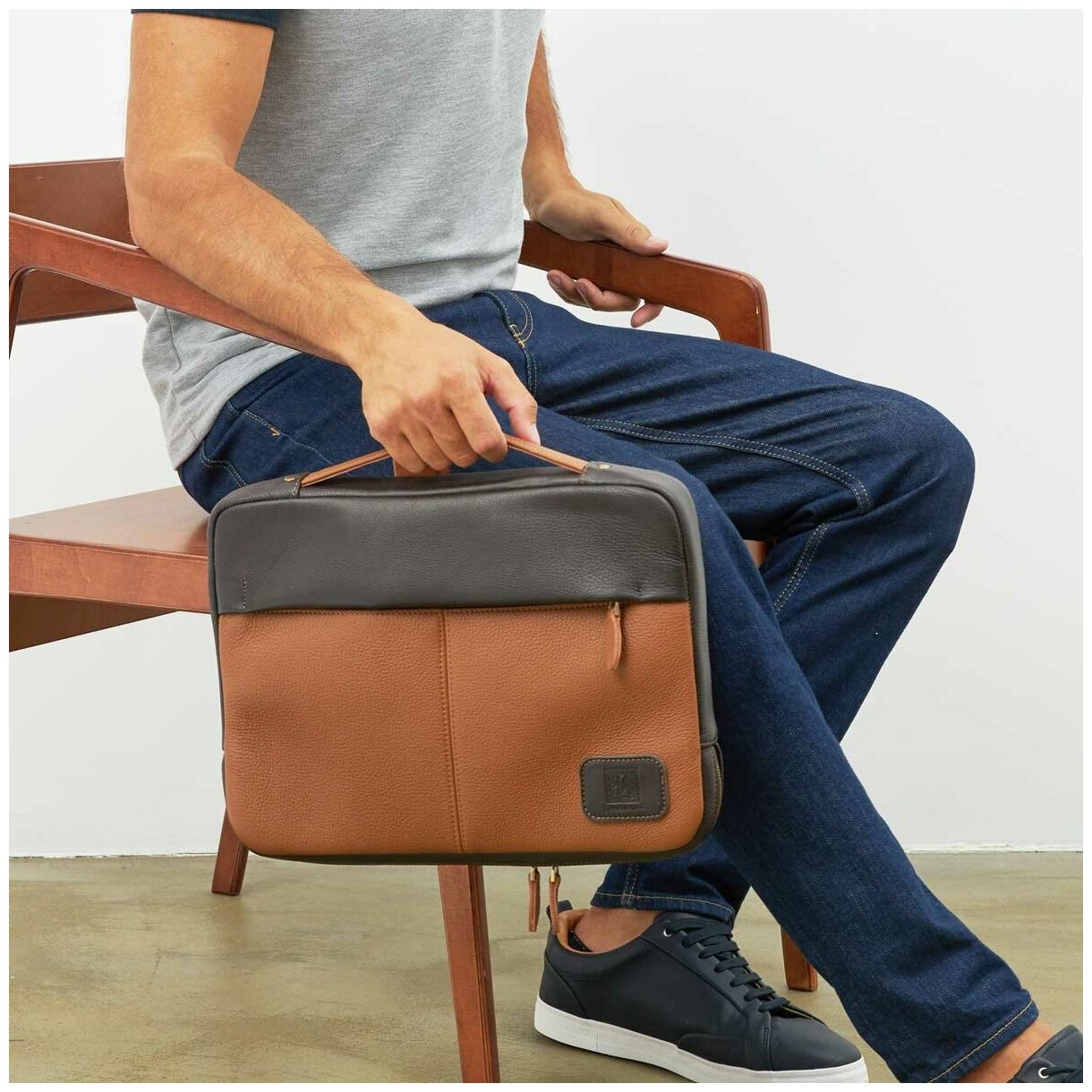 Сумочка J. Audmorr для Ноутбука до 14 дюймов, на молнии с ручкой, Bute Bag Spice, коричневая, светло-коричневая, натуральная кожа, мужская и женская
