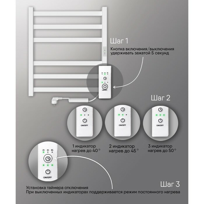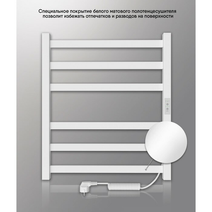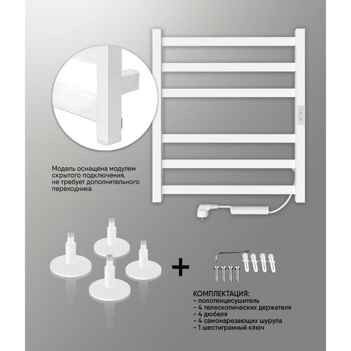 Полотенцесушитель электрический INDIGO Oktava Slim 3 60/50 таймер, скрытый монтаж, универсальное подключение, Белый матовый