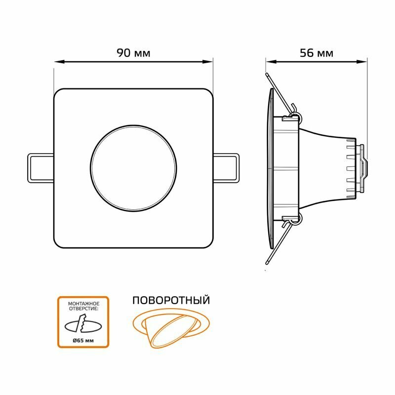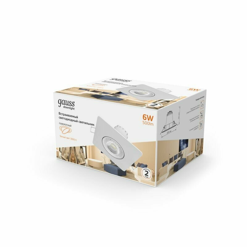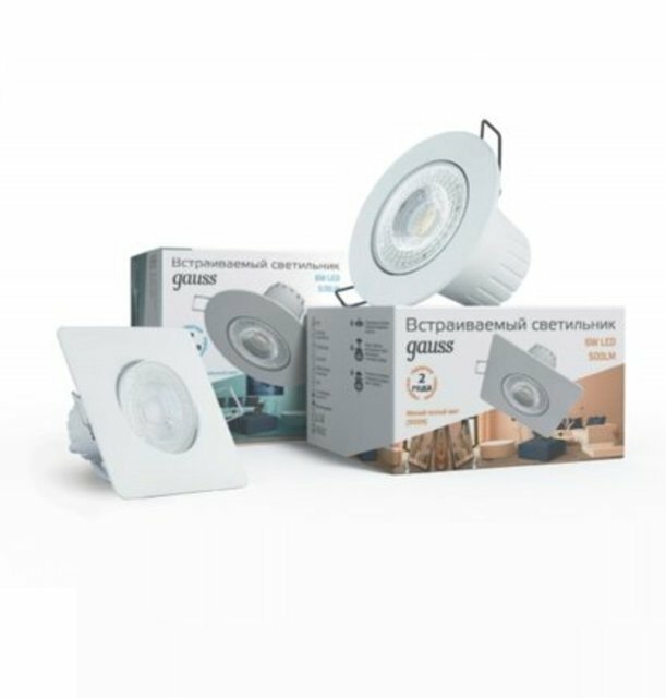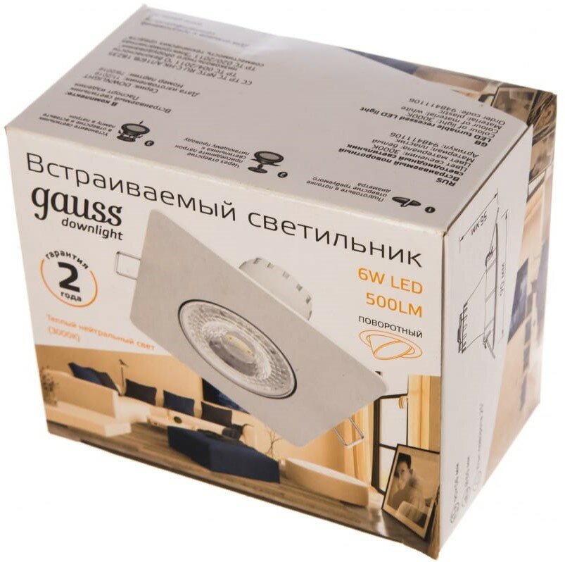 Встраиваемый светильник GAUSS Квадрат. Белый, 6W,90х90х56, 65мм 500 Lm LED 2700K 1/40 интересное: