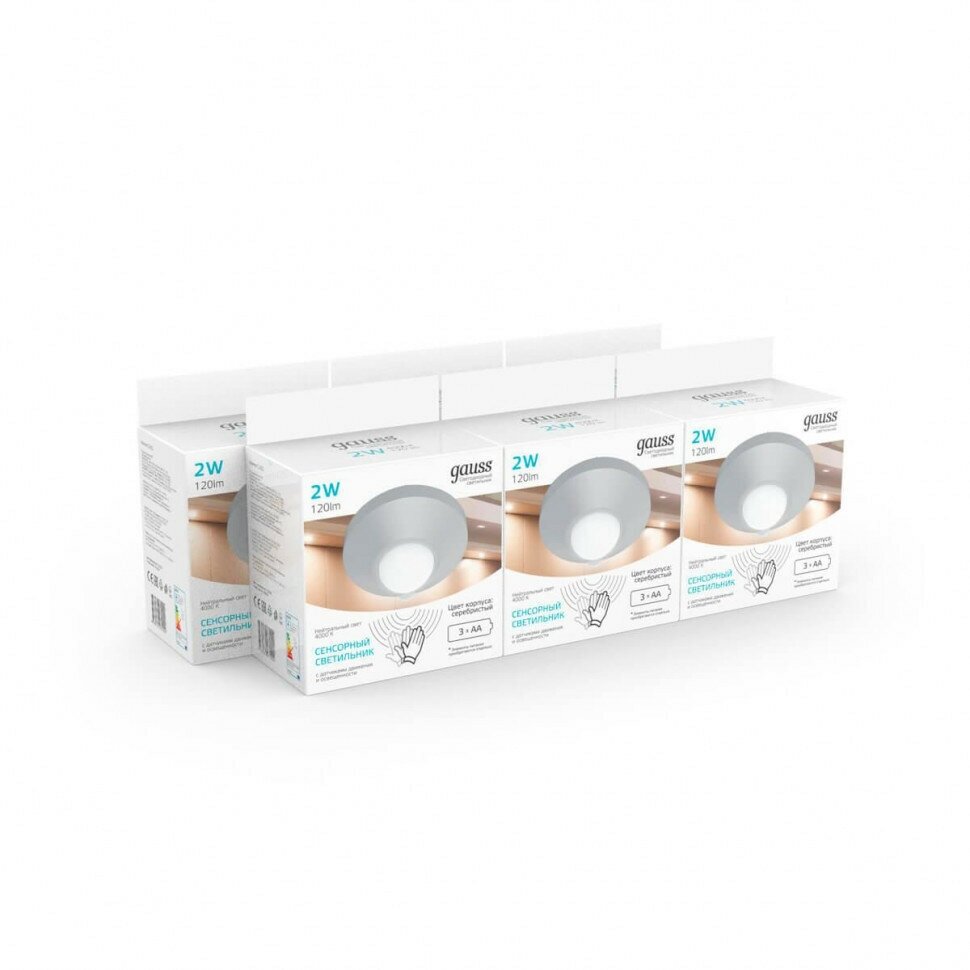 Светильник с/д ДПО 2Вт - с сенсором автон. круг серебро 3*АА Gauss
