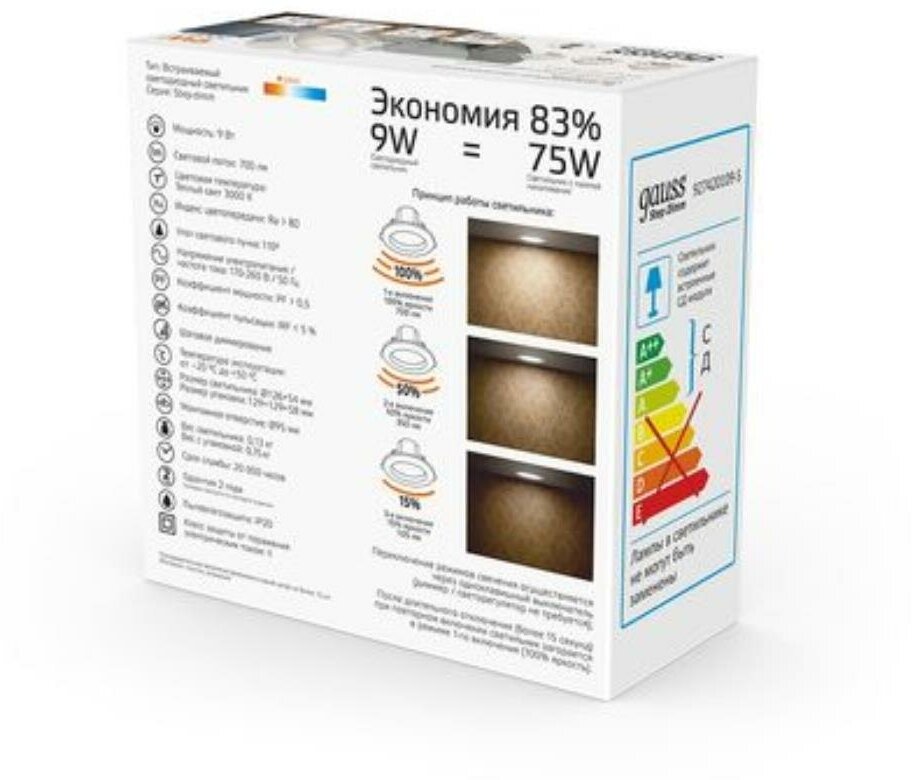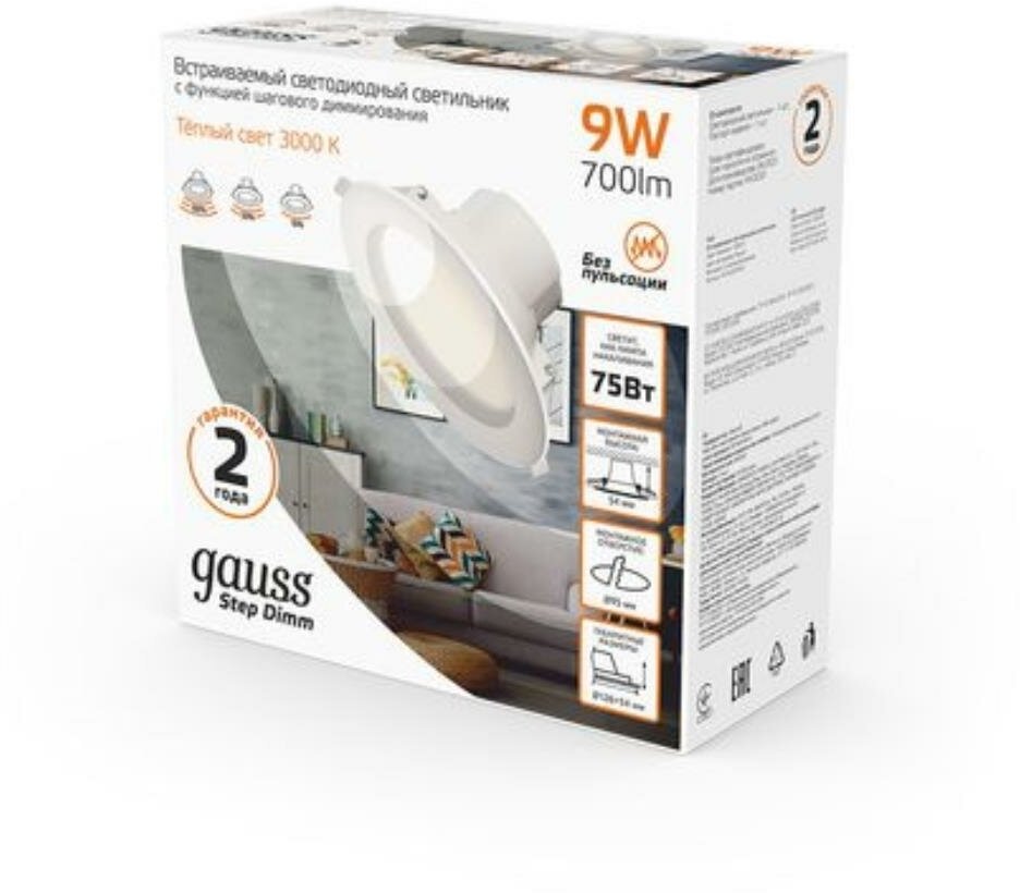 Круглый светильник Gauss белый 9W,126x126x54, O95мм, 3000K, 700 Lm 927420109-S интересное: