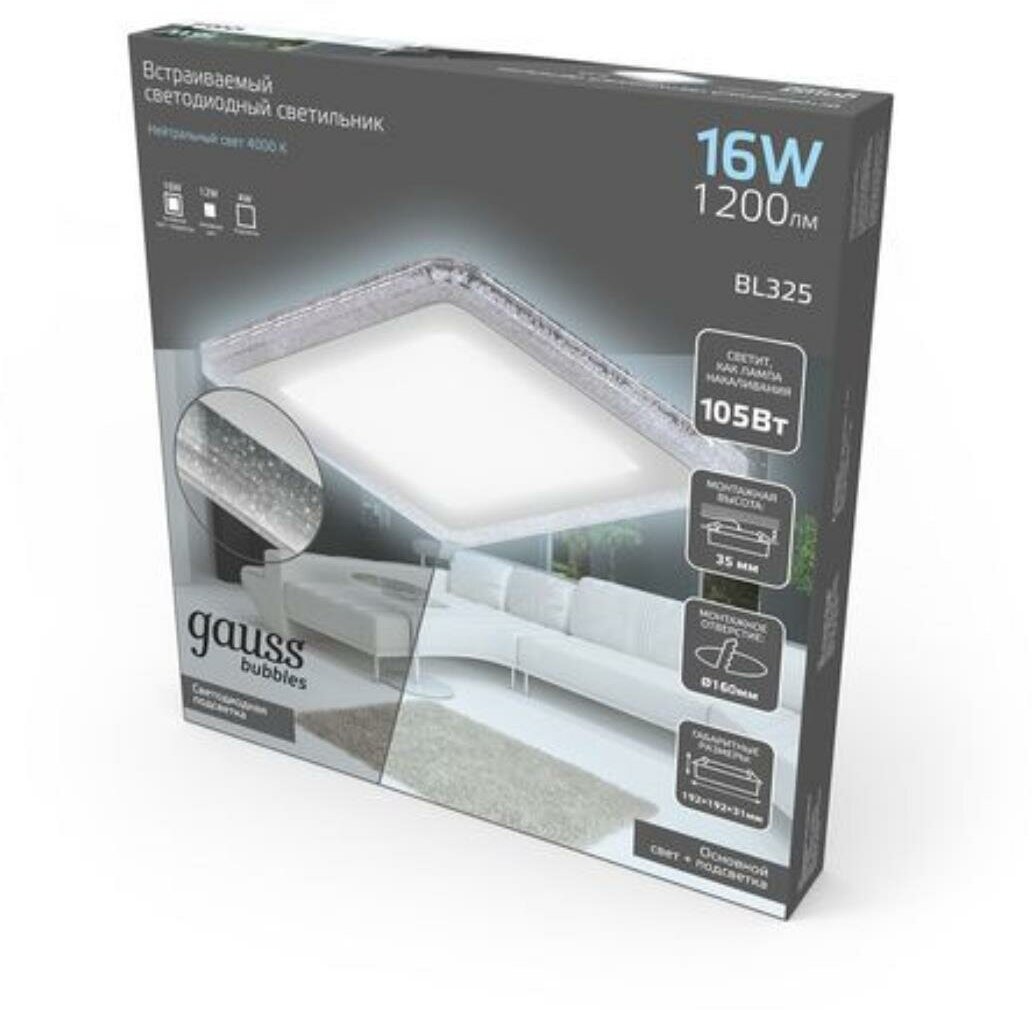 Встраиваемый светильник Gauss Backlight Bubbles BL325 12+4W, LED 4000K, 1200лм,192x192мм
