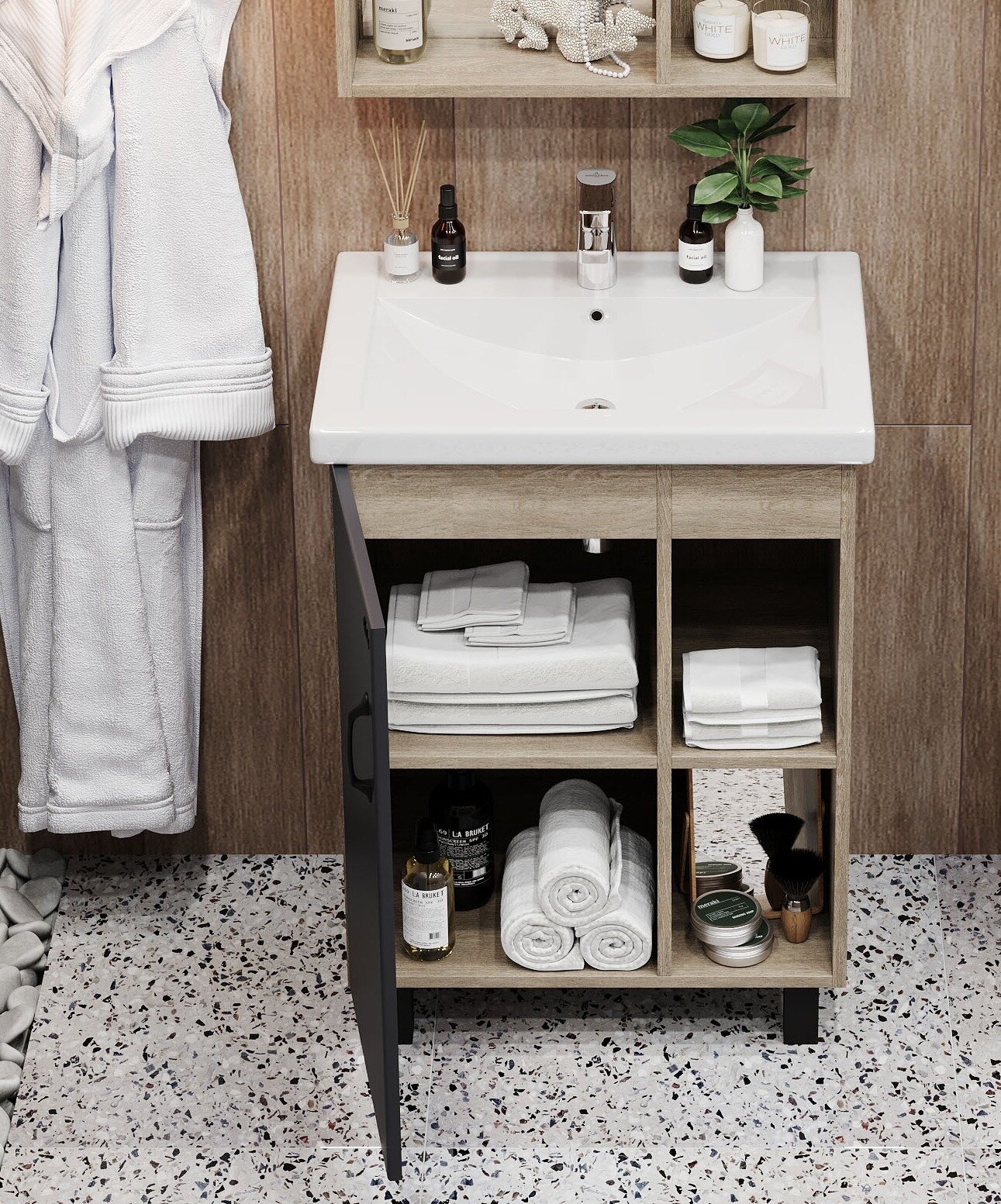 Тумба с раковиной Onika Тимбер 60.01 серая, дуб сонома интересное: