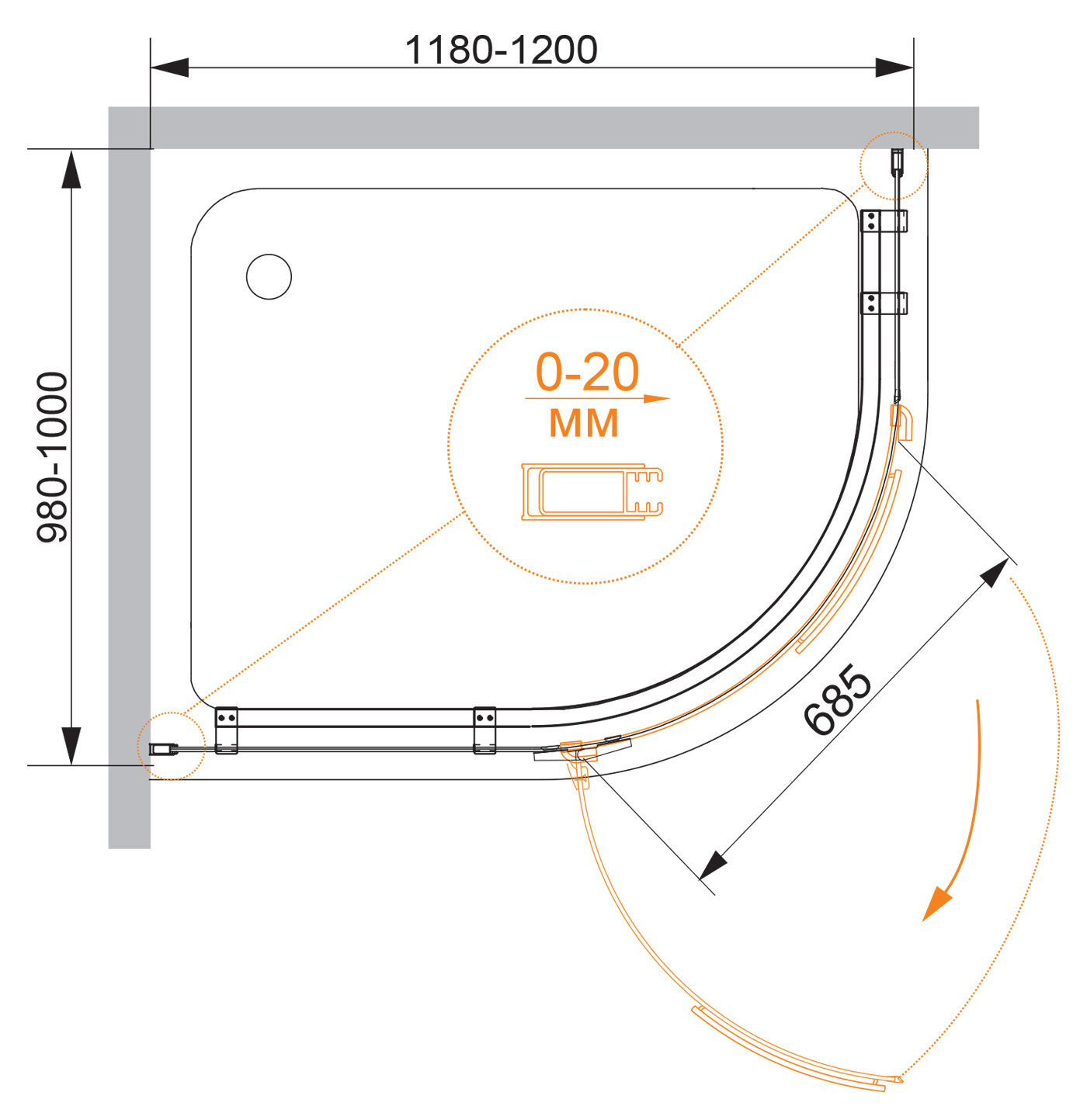 Душевой уголок Cezares BERGAMO W RH 1 120 100 ARCO C Cr L IV