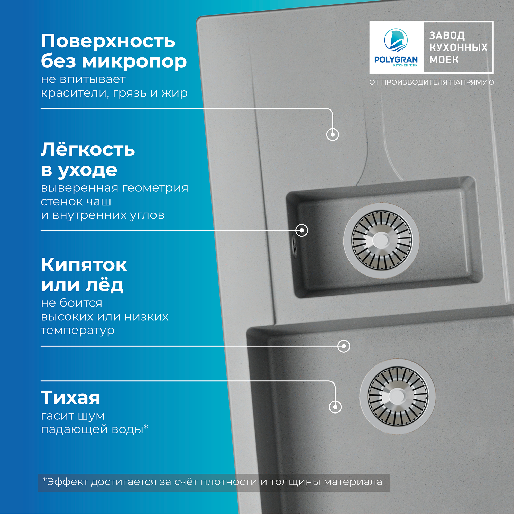 СохранитьКухонная мойка Polygran Brig 870 №14 серый (627376) интересное: