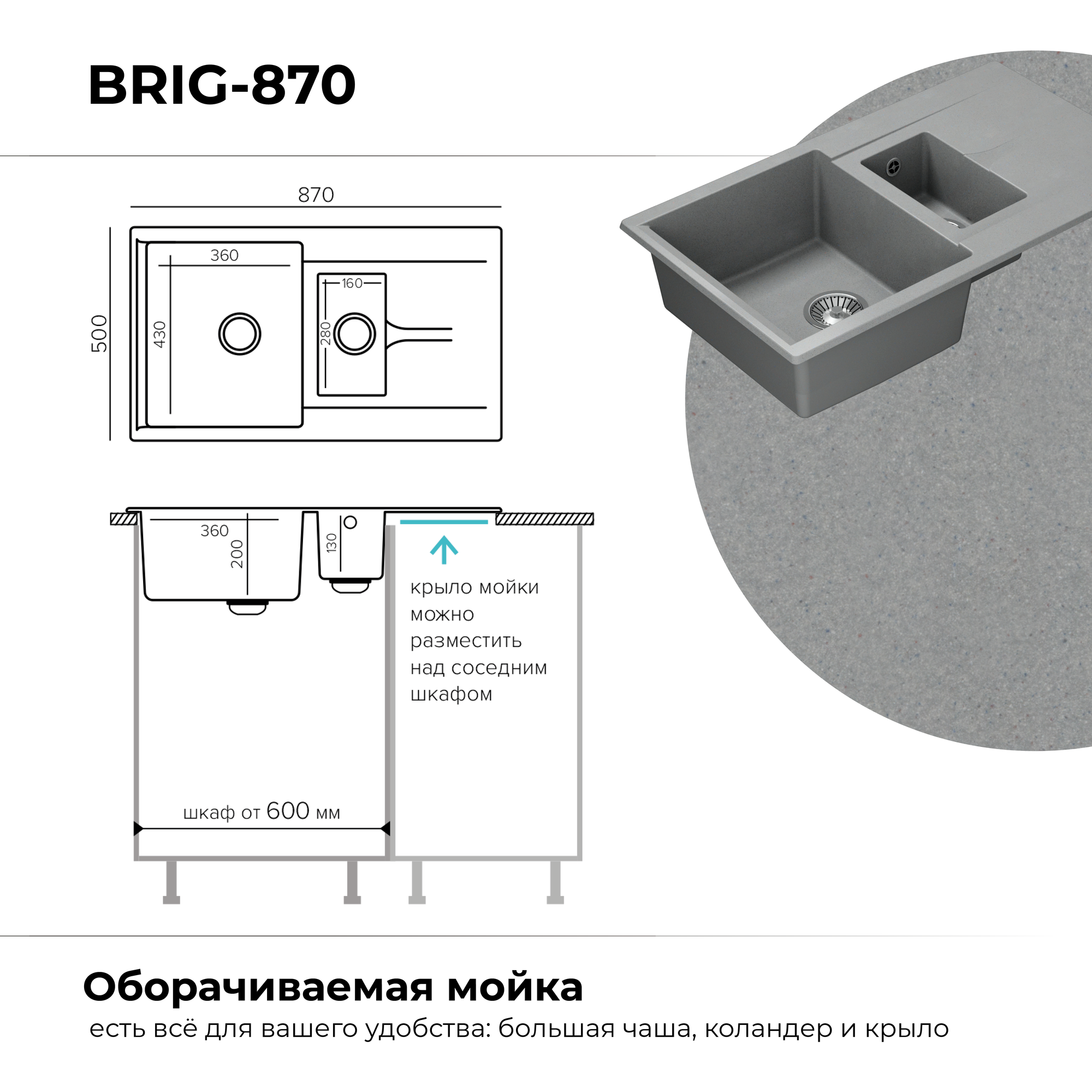 Мойка кухонная Brig-870 Белый хлопок № 36