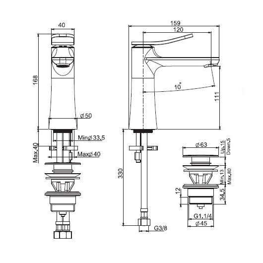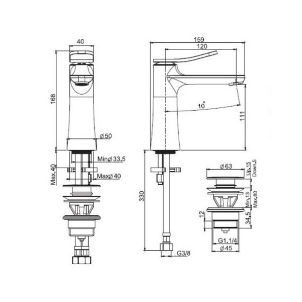 Смеситель для раковины FIMA CARLO FRATTINI FLO F3801CR, с донным клапаном, хром