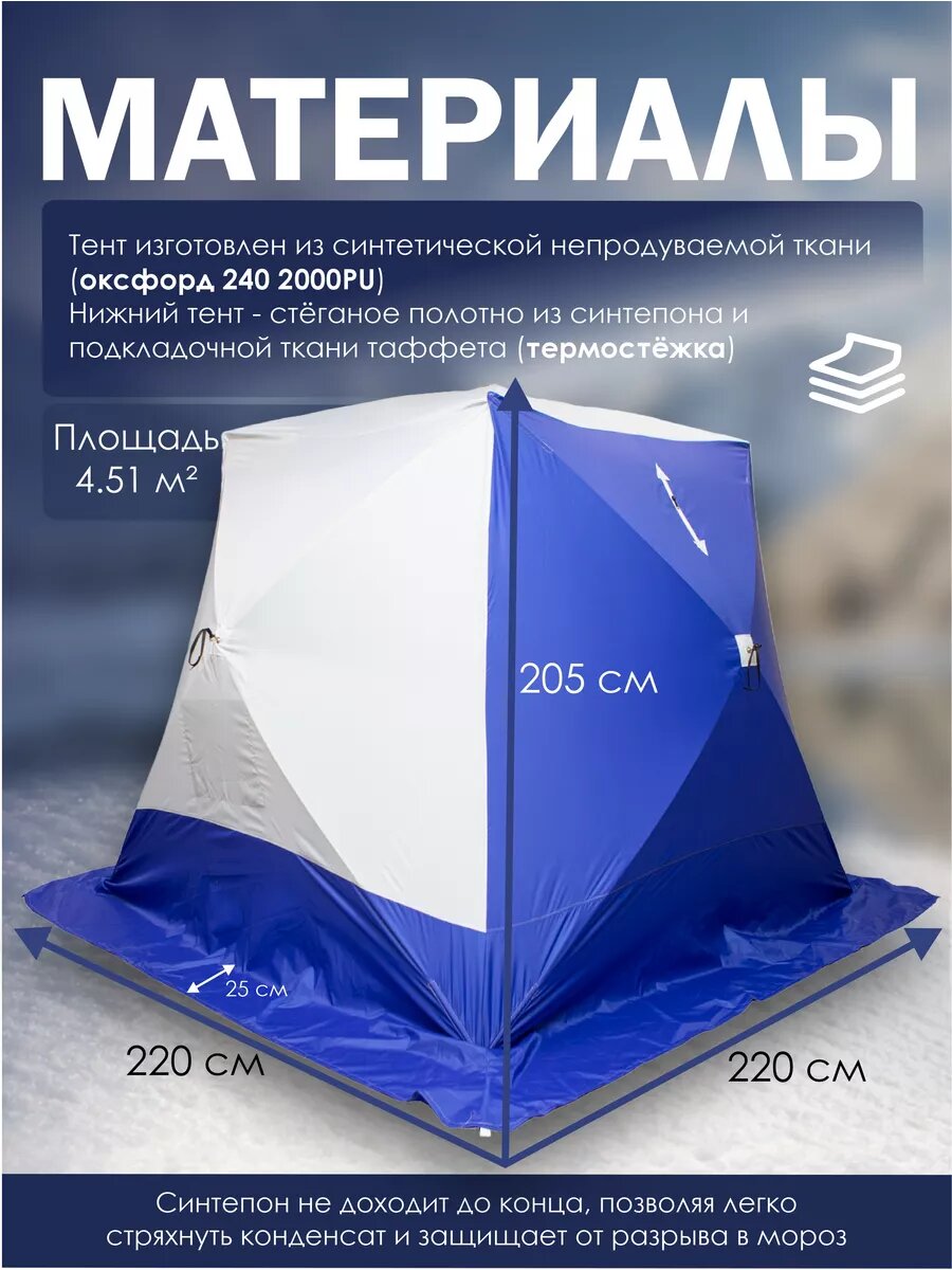 Палатка зимняя для рыбалки стэк КУБ 3 (трёхслойная, дышащая) интересное: