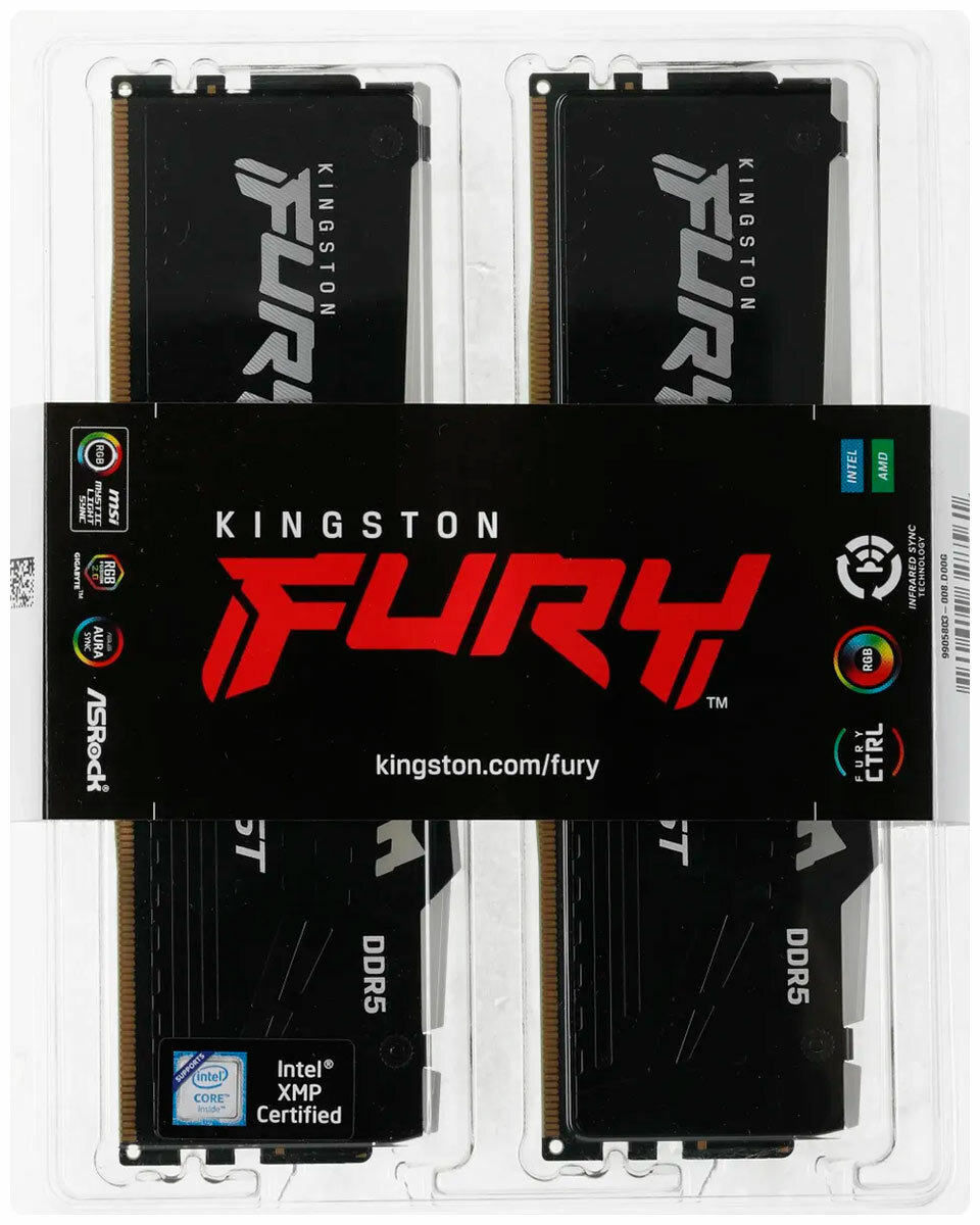 Комплект оперативной памяти Kingston FURY Beast RGB 32 ГБ (16 ГБ x 2 шт.) DDR5 6000 МГц DIMM CL40 KF560C40BBAK2-32