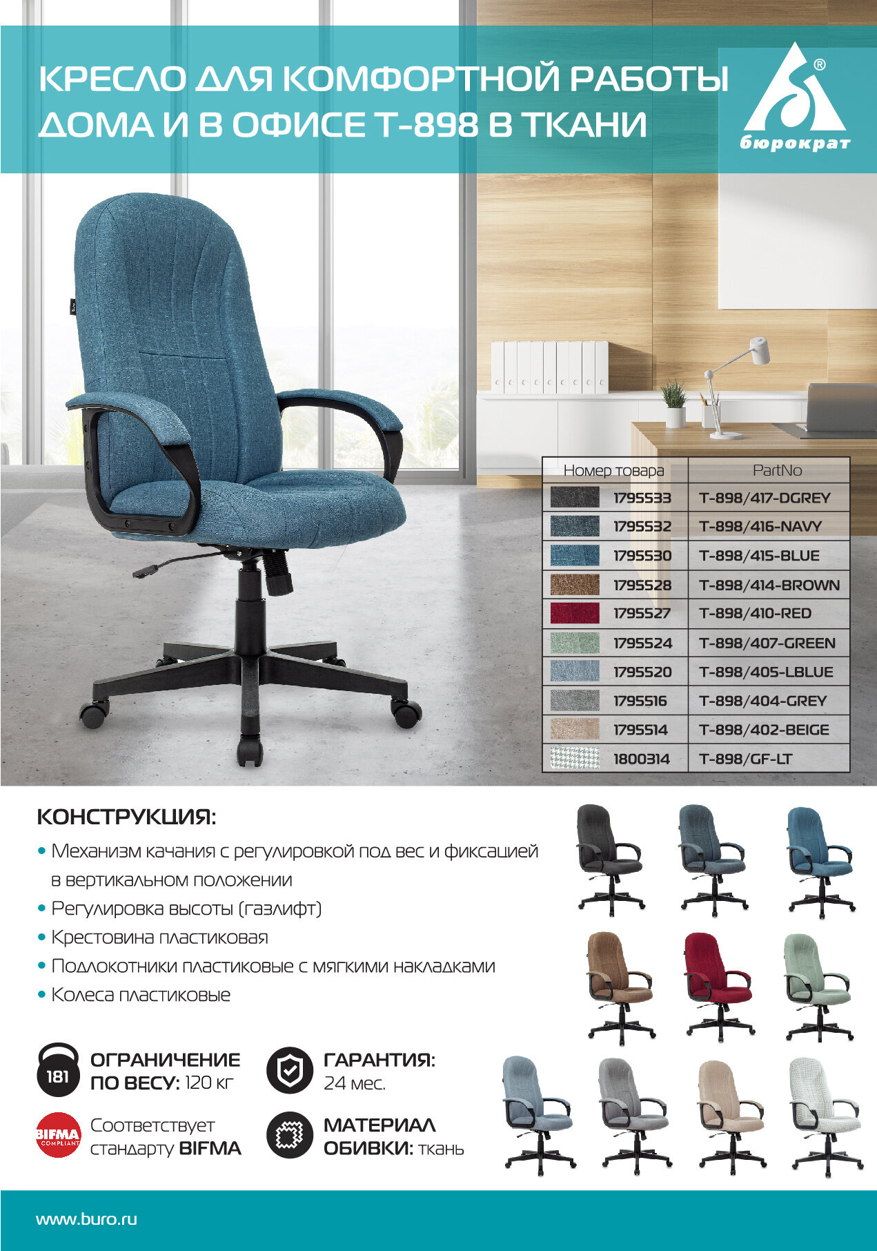Кресло Бюрократ T-898/3С11BL .