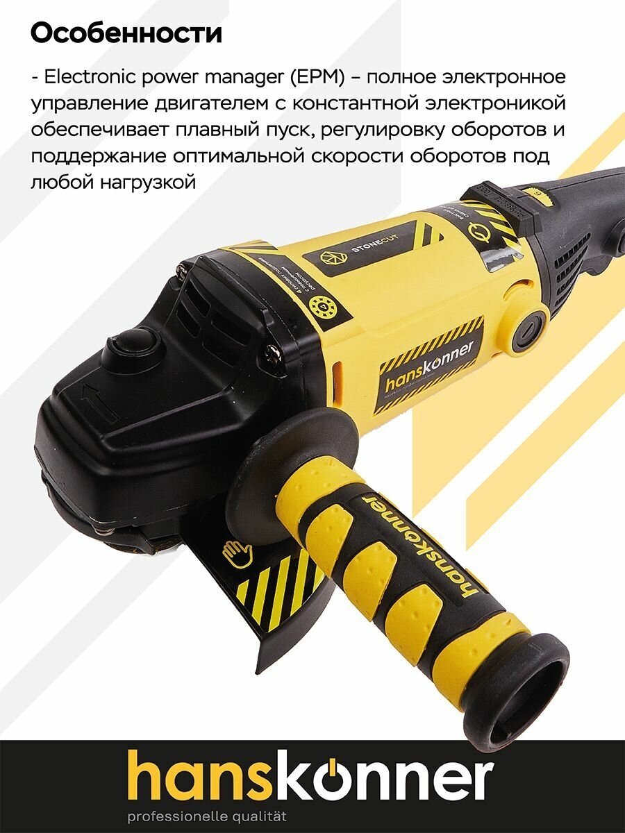 Машина углошлифовальная Hanskonner HAG16180EC 180 мм 2000 Втрег.оборотов конст. Электроника